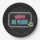 Neon 60th Birthday Marquee On Brick Paper Plate