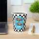 Neon 90's retro Eight is a vibe 8th birthday paper cups with hearts, daisies, disco ball and chequered background.