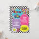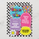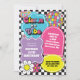 Neon 90's retro Eleven is a vibe 11th birthday invitation with hearts, daisies, disco ball and chequered background.