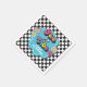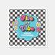 Neon 90's retro Five is a vibe 5th birthday paper napkins with hearts, daisies, disco ball and chequered background.