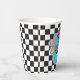 Neon 90's retro Six is a vibe 6th birthday paper cups with hearts, daisies, disco ball and chequered background.