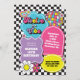 Neon 90's retro Twelve is a vibe 12th birthday invitation with hearts, daisies, disco ball and chequered background.
