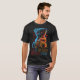 I give wanted to give this a 4 instead of a 5 because these Basic DARK T0shirts run unexpectedly SLIM or Narrow. Which is great if you do not have a potbelly, but I have a paunch. It isn't the shirt's fault that I've got a beer belly. The design and shirt itself is a quality cotton shirt. The color is more of a deep purple, but still a very pretty color. The Basic DARK T-shirts run a bit SLIMMER than the Basic Ts. The neck is a fraction narrower (or seems to be narrower) also. I'm a paunchy middle-aged woman and my neck is 12 inches (31cm) thick and the neckline fell about the same as in the photo of the man, and I had the desire to tug it a bit. So if you're a thick necked man or like loose shirts, be aware these are slimmer shirts. Once I get rid of my lockdown paunch it'll look great. The shirt washed well in cold water with no apparent bleeding. We don't have a dryer, so it hung dry. Did not shrink. Love the colors and the design. The design looks smaller on my shirt than it does on the model on-line. But still, it looks good on the shirt. The printing looks as it does on the model, just the size seems fractionally smaller. Washed garment in cold water, hung dry and design appeared unaffected.