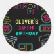 Neon Any year video games arcade birthday Classic Round Sticker
