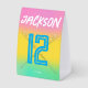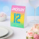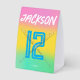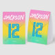 Customized with the birthday child’s name and age, this freestanding sign features a bold baseball theme, modern typography, and a vibrant gradient background that stands out on dessert tables, gift tables, or party displays.
