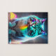 Neon Big Cat With Rainbow Colours, Colourful Cat Jigsaw Puzzle