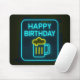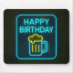 A vibrant neon sign displays a 'Happy Birthday' message with a glowing mug of beer