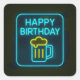 A vibrant neon sign displays a 'Happy Birthday' message with a glowing mug of beer