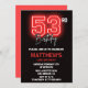 Neon Black Red Men Sport 53rd birthday Invitation