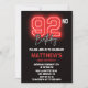Neon Black Red Men Sport 92nd birthday Invitation