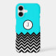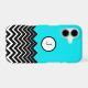 Cute trendy modern chic girly custom monogram case for your cell phone, ipad and more in a neon blue color which can be changed by selecting a different color. The bottom portion of this case is designed with a black and white chevron zigzag image that can be enlarged, reduced and moved around by clicking "customize it" and selecting the chevron image then use the directional tools to move it around. Change the monogram with a different letter or initials.