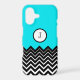 Neon Blue Black White Chevron Zigzag Monogram