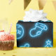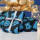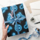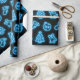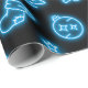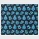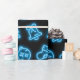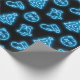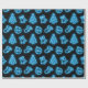 A seamless pattern of Neon Blue Christmas elements, including Christmas Trees, Bells, Stockings and Ornaments on a Black background