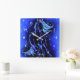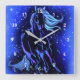 Neon Blue Horse Running At Moonlight Starry Night Square Wall Clock