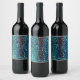 Neon blue mosaic style over rough hammered glass wine label