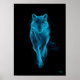 A sleek wolf formed from glowing blue neon filaments in a dramatic high-contrast composition. This futuristic animal artwork combines cyberpunk style, fluid motion, and modern minimalism, making it ideal for wall decor in gaming setups, studios, masculine interiors, and contemporary spaces. A sharp and atmospheric statement piece from the Quantum Flow Creatures collection.