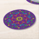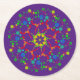 Neon Bubble Orbs Mandala on Deep Purple Round Paper Coaster