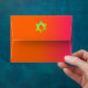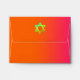 This neon orange, hot pink and black A2 envelope with neon green, purple, and blue flowers and butterflies has a Star of David on the back that matches the Bat Mitzvah invitation shown below. If you require any other matching items in this design, please email your request to niteowlstudio@gmail.com.
