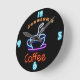 Fun and modern this neon sign themed wall clock makes a great gift. Add a name to personalise. In this collection of neon light styled wall clocks are clocks for man cave (bar, happy, hour, beer and cocktail themes), coffee and cafe themes for the kitchen or workplace, car and garage themed for mechanics, kids clocks for boy or girls bedroom with dance music or gamer themes. Lots to choose from. Browse the attached collection to view them all.