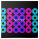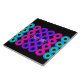 Elegant Colour Circles is a vibrant display pattern of single file colours of blue, green, light blue, pink and purple with a elegant black background.
