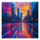 This breathtaking neon cityscape captures a futuristic skyline illuminated by a glowing sunset. The vibrant reflections on the wet streets enhance the cyberpunk aesthetic, creating a stunning visual of urban energy. Perfect for modern decor, tech-inspired fashion, and cityscape lovers.