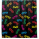 Vector illustration of multi-coloured party glasses in a repeating pattern against a black background.