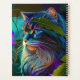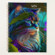 Neon, colourful Maine Coon cat in tropical flowers illustration. For all cat lovers. Image created digitally, generated by AI, You can change the text - monogram