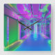 Neon colourful square wall clock.