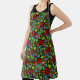 Apron adult size all over print style printed with Neon Colours On Black Retro Floral Seamless Pattern original hand drawn graphic design artwork illustration by TheFabricSeal print on demand shop at Zazzle.com #ZazzleMade ©️Original. https://www.zazzle.com/store/thefabricseal