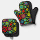Oven Mitt and Pot Holder Set printed with Neon Colours On Black Retro Floral Seamless Pattern original hand drawn graphic design artwork illustration by TheFabricSeal print on demand shop at Zazzle.com #ZazzleMade ©️Original. https://www.zazzle.com/store/thefabricseal