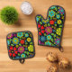 Neon Colours On Black Retro Floral Seamless Patter Oven Mitt & Pot Holder Set