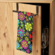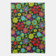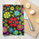 Kitchen Towel and home decor accessory printed with Neon Colours On Black Retro Floral Seamless Pattern original hand drawn graphic design artwork illustration by TheFabricSeal print on demand shop at Zazzle.com #ZazzleMade ©️Original. https://www.zazzle.com/store/thefabricseal