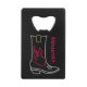 Looking for a unique and personalised gift or fancy accessory for yourself? Check out our neon cowboy boot Credit Card Bottle Opener! This eye-catching design features a customisable name, making it the perfect accessory for any Western lover. Order now and add a pop of colour to your space with this one-of-a-kind design.