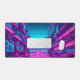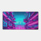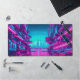 Neon Cyan Magenta Cyberpunk Cityscape Gamer Desk Mat