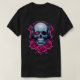 Neon Cyber Death Skull and Roses Black T-Shirt