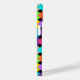 This phone case has a geometric design of neon diamonds overlapping each other on a field of black.