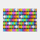 This doormat has a geometric design of neon diamonds overlapping each other on a field of black.