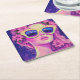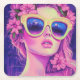 Neon Dream Girl with Floral Sunglasses Square Paper Coaster