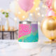 A vibrant burst of electric colours and stencil shapes that dance across the canvas in pure artistic chaos. Features bold magentas, electric yellows, turquoise blues, and deep purples that blend and clash in perfect harmony. Splattered paint textures, spiral motifs, and flowing forms create an energetic piece that captures the essence of creative freedom and artistic expression. Personalise with a name.
