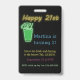 Neon Drinks And Dancing 21st Birthday Party Invita ID Badge