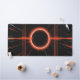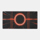 This image features a striking abstract design centred around a glowing red ring that resembles a solar eclipse or a futuristic portal. The ring is surrounded by sharp, energetic red and white light beams that shoot outward in multiple directions, forming a dynamic grid-like pattern. The background is deep black, enhancing the contrast and intensity of the luminous red and white lines. The overall composition evokes a sense of energy, tension, and motion, blending sci-fi aesthetics with digital art.