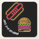 Neon Fast Food Monogram Name Vibrant Square Paper Coaster