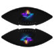 Antique, mechanical firefly with light bulb and thin wings glows orange, purple, turquoise on black background. Steampunk style.