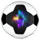 Antique, mechanical firefly with light bulb and thin wings glows orange, purple, turquoise on black background. Steampunk style.
