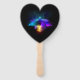 Antique, mechanical firefly with light bulb and thin wings glows orange, purple, turquoise on black background. Steampunk style.