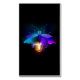 Antique, mechanical firefly with light bulb and thin wings glows orange, purple, turquoise on black background. Steampunk style.