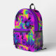 Kick off your back to school in style with this funky Neon Flame tie dye backpack. This fun, stylish custom backpack features a very bright and colourful tie dye design on a black background. A monogram initial text template is included - use it to personalise your bag or remove it, the option is yours. This backpack also features a bright purple colour block strip at the top of the front pocket, complimenting the monogram. Feel free to change these to suit your style!