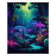 Neon Forest and Glowing Mushrooms Fantasy Art Poster