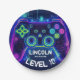 Neon Gamer Arcade Video Game Level Up Birthday Paper Plate