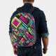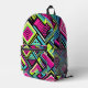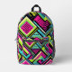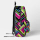 Brighten up your day with the Neon Geometric Retro Vibes Backpack. This design combines bold neon pink, electric green, cyan, and black in a series of dynamic geometric shapes. The sharp lines, triangles, and zigzag details give this backpack a playful, energetic feel reminiscent of retro 80s street art. Perfect for those who love bold, colourful designs, this backpack is a vibrant statement piece for everyday use or travel.